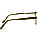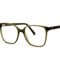 Sternenflug ist eine Damenbrille mit Charakter. Ihre große, eckige Form mit einem Hauch Schmetterling verleiht Ausdruck und Selbstbewusstsein. Das transparente Dunkel-Olivegrün der Brille wirkt edel und modern zugleich, während die gemusterte Metalleinlage am Bügel für feine Raffinesse sorgt.