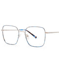 Das ist Liebestrunken – eine Brille, wie die eine Freundin, die immer mit einer eleganten Leichtigkeit und einem Hauch von Vintage-Charme an deiner Seite ist. Mit ihrer großen, eckigen Glasform und dem stilvollen blauen, gemusterten Fassungsrand bringt sie genau die richtige Mischung aus zeitloser Eleganz und einzigartigem Stil mit. Die glänzenden Silberakzente setzen das i-Tüpfelchen auf ihre raffinierte Erscheinung.