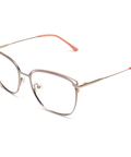 Triff Sarah, eine Metallbrille, die jedes Outfit in einen Sonnentanz verwandelt. Sie weiß, wie man das Leben von der heiteren Seite nimmt und ist immer so frisch, wie der erste Frühlingstag in Blassrosa, Pastelllila und stilvollem Gold. Wie eine Stilbotschafterin betont die Brille deine feminine und elegante Seite und ihre abgerundeten Gläser umarmen dich wie eine alte Freundin.